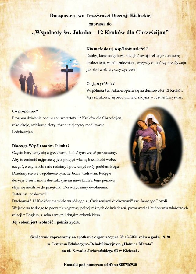 zaprasza do „Wspólnoty św. Jakuba – 12 Kroków dla Chrześcijan”
